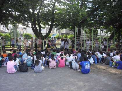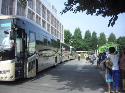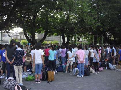 22日朝7時50分、校庭で日光林間学園の出発式がありました。校長先生からは、歴史の学習とともに、一人ひとりが周囲に気を配り、集団行動をしっかりしようという話がありました。バス3台に乗車し、8時5分に日光に向けて出発しました。82名の6年生には、3日間、元気に楽しく過ごしてほしいと思います。出発式には大勢の保護者の方が見送りに来てくださいました。早朝よりお弁当作り、そして見送りとありがとうございました。