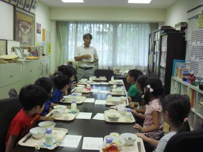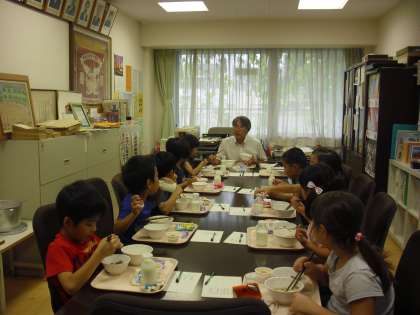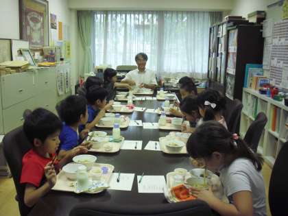 2学期も校長先生と一緒に食事をする会食を行います。1学期は、6年1組から始まり、2年3組までで44回行われました。2学期は1年1組からスタートです。やや緊張気味の子どもたちでしたが、自己紹介をしながら食事をするうちに、だんだん打ち解けていきました。食事の他にアンケートもあり、それぞれに考えながら答えていました。