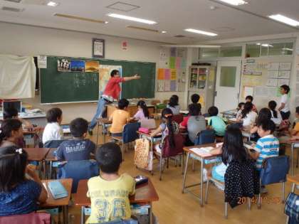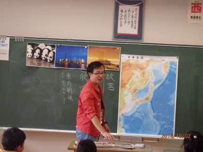 3年3組には、西安出身の中国の留学生が来てくださいました。中国の地理クイズ(日本からの距離、時差等)を出してくださり、中国で有名な場所等を写真で紹介してくださいました。子どもたちは、写真をよく見て、クイズに楽しそうに取り組んでいました。