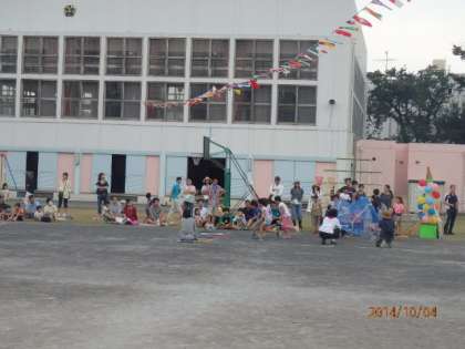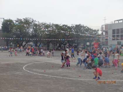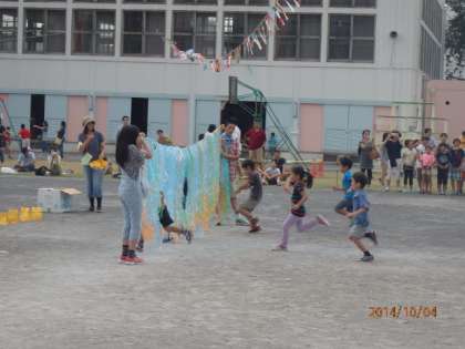 台風が来る前、土曜授業日の午後から、健康フェスタが行われました。今年は、参加者が多く、子ども・大人合わせて、500名を超えました。写真は、障害物競走、宝探し(幼児)、玉入れの様子です。宝探しは1年生も参加し、玉入れは大人の部もありました。