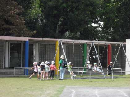 2学期になってから、「区立赤堤保育園」の子どもたちが本校に遊びに来るようになりました。毎回お友達と手をつないで登校し、元気なあいさつをしてくれます。年中さんも年長さんも赤堤小学校の運動場を見て「広ーい」「すごーい」と感激していました。運動会の練習をしたり、遊具で遊んだりして楽しい時間になったようです。