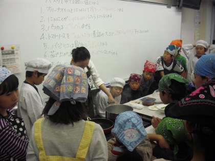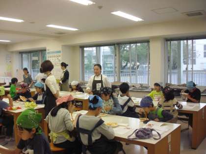 22日に5年2組が味覚の授業に参加しました。シェフが目の前で調理してくれました。フライパンにオリーブオイルとにんにくを入れ、あたためていくといい香りが漂い、さらにトマトソースを加えるとジュッと音がして、子どもたちの五感を刺激していました。今回は「トマトスパゲッティ」に挑戦しましたが、どの班もおいしく出来上がりました。