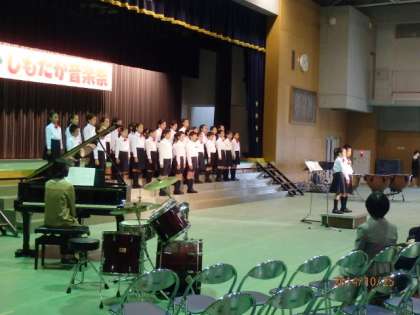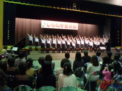 3・4年生29名と5・6年生3名がしもたか音楽祭に出演しました。重唱1曲と合唱2曲を歌いました。しもたか音楽祭へは、3回目の出演です。これからも、音楽で地域と繋がっていきたいと思います。