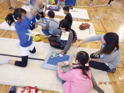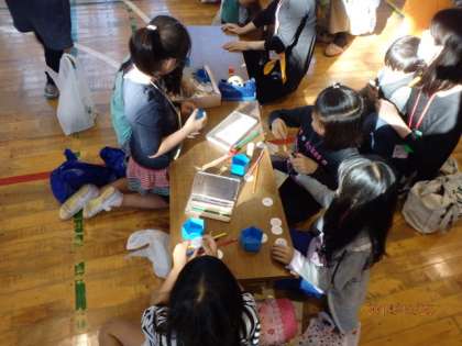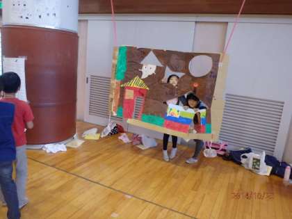 合唱団の子どもたちは、しもたか音楽祭出演と重なってしまいましたが、がんばりました。写真は「しゅりけんまとおとし」体験コーナー「こものいれをつくろう」「めんこコーナー」の様子です