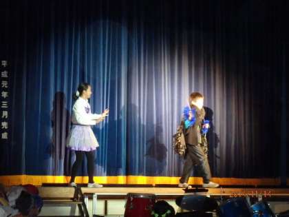 さすが6年生。役者ぞろいが演技を競い合っているようでした。女子が男子役をするのは、よくありますが、男子が女子役に挑戦しています。お楽しみに。