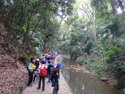 その後、等々力渓谷を散策し、玉川野毛町公園でお弁当を食べました。食べている途中から、雨がぱらぱら降り出し、次大夫堀公園は、雨の中での見学になりました。集合時の切り替えが遅く、話を聞く状態になるのに時間がかかったところが、これから、がんばってほしいことでした。