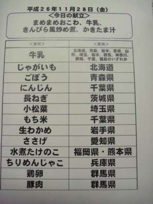 11月28日(金)の給食食材産地について