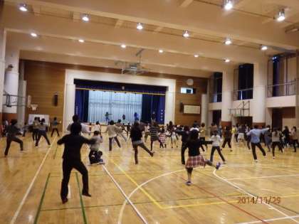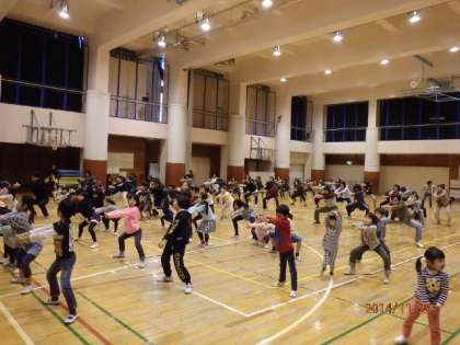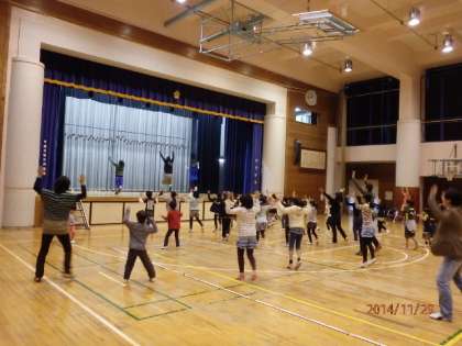 SHIMA2先生がこの日のために考えてくださったダンスを教えてくださいました。たくさんの保護者に交じって、40名を超える児童、教員4名も参加して、楽しくダンスすることができました。家庭教育学級委員の皆様、1年間ありがとうございました。