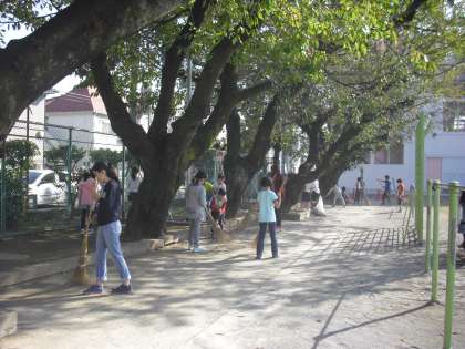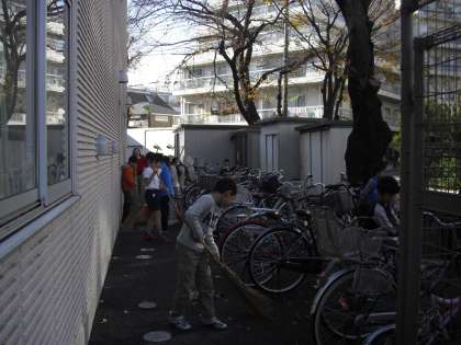 10月30日から始まった縦割り班による「落ち葉はき」が8日で終了しました。今年度は、数字の大きな18班からスタートしました。そうじの時間に1年生から6年生まで1人1本ほうきを持って作業をしました。上級生は竹ぼうきの使い方を教えたり、集めた落ち葉を袋に入れたりしてリーダーの役目を果たしていました。