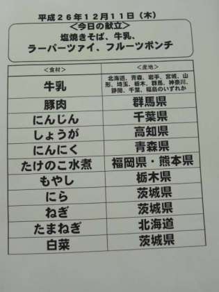 12月11日(木)の給食食材産地について