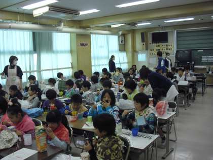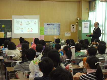 13日(土)の2時間目に、3年生の歯みがき指導がありました。学校歯科医の先生から「口の働き」や「虫歯ができるのはどうしてか」のお話をしていただきました。その後、歯科衛生士さんに1人ずつ歯を赤く染めてもらいました。3年生は真っ赤な歯を見ておどろき、夢中になってみがいていました。毎日の歯みがきの他に、フロス(糸ようじ)を使って歯の間もきれいにするとよいそうです。「子どもたちよりも大人の虫歯が増えているので、家族みんなで歯みがきをしてください。」とメッセージをいただきました。