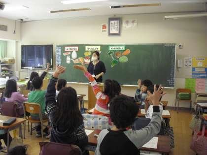 16日(火)、17日(水)の2日間、栄養士による食育の授業が3年生対象に行われました。まず、前の日の給食の献立に使われた食材を探すことから始まりました。次に食べ物は3つの仲間に分かれることを学習し、先程の食材を3つのグループに分けていきました。さらに、嫌いだからと言って食べないと体はどうなるかを話し合いました。最後にまとめと感想を書きましたが、その日の給食から3年生の残菜が少なくなったと報告がありました。