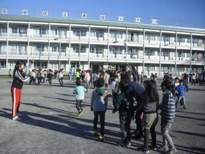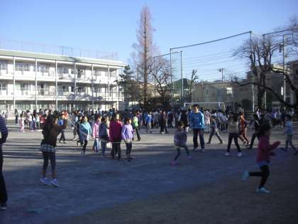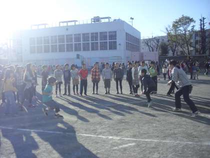 19日(金)の朝、わくわくスポーツタイムがありました。今回は2学期最後の長縄に挑戦しました。校長先生の合図で5分間の長縄跳びが始まりました。17クラス一斉に縄が回りだし、子どもたちの元気な掛け声が校庭いっぱいに広がりました。低学年の子どもたちも長縄跳びが上手になってきました。写真は、1年、2年、3年生です。