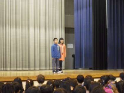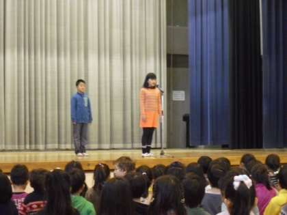 8日(木)の朝、体育館で3学期の始業式がありました。校長先生から、群れで生活する羊の姿を子どもたちに重ね、「安全に楽しく仲良く生活してほしい。」と話がありました。児童代表の言葉は4年生です。漢字学習をがんばりたい、けがをしないようにしたい、思いやりの心を忘れずに友達を大切にしたいという抱負が立派に述べられました。最後に、合唱団の3人の表彰がありました。3人は、昨年12月26日に行われた「TBSこども音楽コンクール東日本優秀校演奏発表会重唱の部」において最優秀賞に選ばれました。