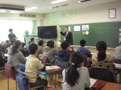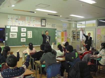 19日(月)に6年生は社会科の学習として「租税教室」に参加しました。税理士さん2名が来校され、1クラスずつ「税理士とはどんな仕事をしているのか」「税とは何か」「税がないとどうなるのか」などの話を中心に、税についてまとめてあるDVDも見て学びました。重さが10Kgもある1億円のレプリカも見せていただきました。