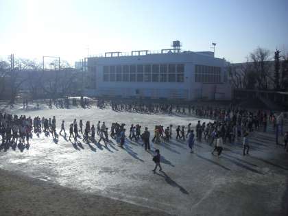 心配していた天気も雪にはならず、6日(金)の朝は、校庭でわくわくスポーツタイムを実施することができました。本校は寒い時期の体力つくりのために6日から28日までをマラソン月間として取り組みます。各学年、各クラスごとにスタート位置が決められており、自分のペースで走ります。寒さに負けず自分の体力を高めるために続けてほしいです。