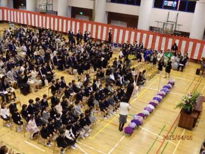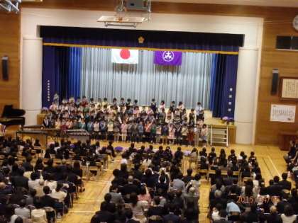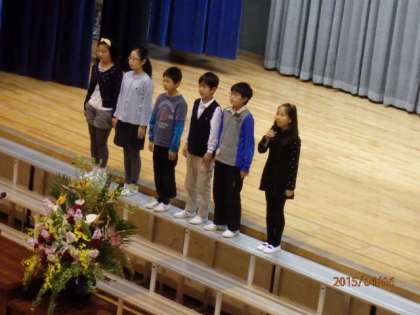 107名の新1年生を迎え、入学式が行われました。幸い暖かい一日となり、たくさんの保護者や来賓の皆様に見守られ、小学校第一日目が無事終了しました。新6年生の合唱で新入生を迎え、代表児童による最上級生としての自覚が感じられる歓迎の言葉、新2年生の歓迎の演技、どれをとっても素晴らしかったです。平成27年度が子どもたちにとって、いい年になりますよう、教職員一同、心を一つにして取り組んでいきます。