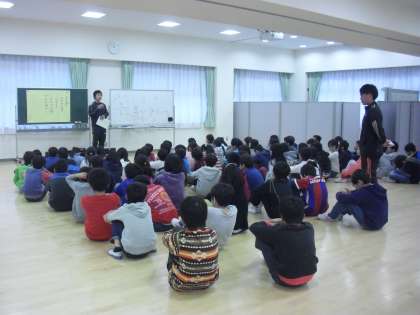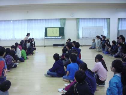 5年生は、2クラスから3クラスになりました。2回目のクラス替えを経験し、新しい先生との出会いを学年集会として行いました。高学年の仲間入りをしたので、自分のことだけではなくまわりにも目を向けようと担任から話がありました。最後に無言で誕生日を伝え合い、4月生まれから順に並ぶゲームをしました。一列に並んだ後、一人ずつ自分の誕生日を発表しました。担任3人もクラスに加わり、楽しいスタートとなりました。