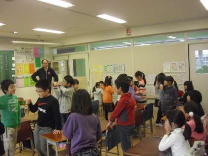 今年度から毎月1回、火曜日の朝にクラスごとに「構成的グループエンカウンター」を実施することにしています。その第1回目を14日(火)に行いました。5・6年生は「学習習得確認調査」のためできませんでしたが、1年生から4年生まで朝の15分間に取り組みました。1年生は「じゃんけんチャンピオン」2年生は「じゃんけん列車」3・4年生は「誕生日チェーン」「サイコロトーキング」でした。各クラスからは笑顔がたくさん見られました。写真は、2年生、3年生、4年生の様子です。