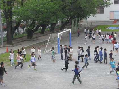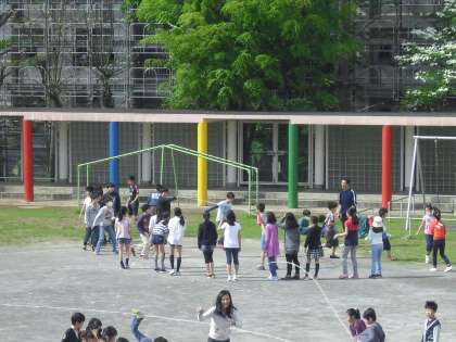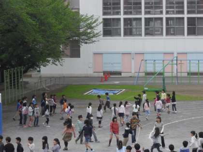 練習後、校長先生の合図で5分間の計測を行いました。1年生以外の学年も今年度初めての長縄跳びでしたが、声を掛け合う姿が見られました。5分間の記録は給食時間に発表されました。休み時間等に練習を重ねることでさらに跳ぶ回数が増えると期待しています。本校の5分間の最高記録は、昨年度6年生が出した「555回」です。写真は、4年生、5年生、6年生の様子です。