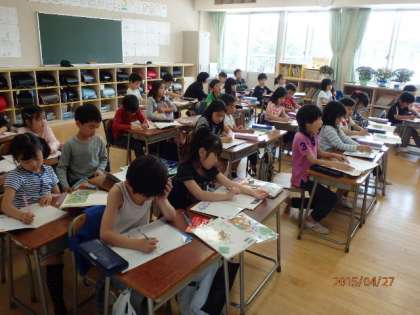 今日の授業は、「たろうのともだち」でした。今日のめあては、「お話のおもしろかったところとそのわけを発表しよう」でした。先生はまず、みんなでめあてをしっかり確かめていました。子どもたちの発表では、ノートを持って読むとみんなに聞こえることを実演していました。また、先生は、子どもたちのよい行動をほめることにより、みんなに伝えようとしていました。