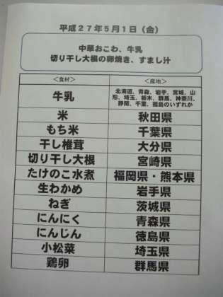 5月1日(金)の給食食材産地について