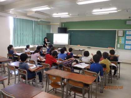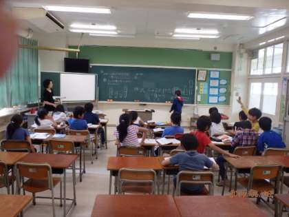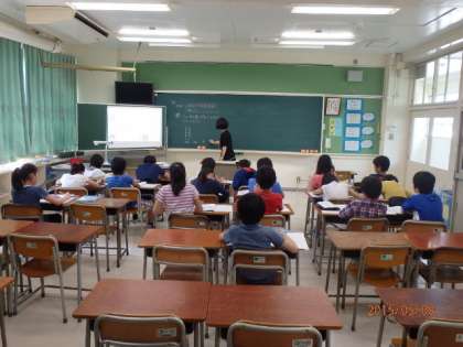 今年度本校は全校で18学級に増え、北校舎に空き教室がありませんので、少人数算数教室が西校舎です。また、新5年に転入生が2名あり、3学級になりましたので、少人数算数は、4コースに分かれて実施しています。このコースは、18名の「しっかりコース」です。今日のめあては、工夫して「ならす」方法を考えようでした。子どもたちそれぞれが図や式で考え、発表し合っていました。