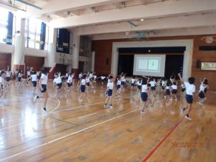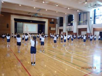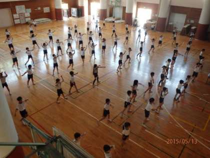 今年の4年生の団体演技は、「モンキー・マジック」です。体育館では、DVDを見ながら練習していました。ステップや体全体の動きが難しく、苦戦している子もいました。これから練習を重ね、当日は、リズムあふれるダンスを披露できるでしょう。お楽しみに。