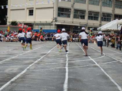 初めての曲線コースでの徒競走です。距離も50mから80mになりました。どの子も自分の持っている力を思いっきり出していました。