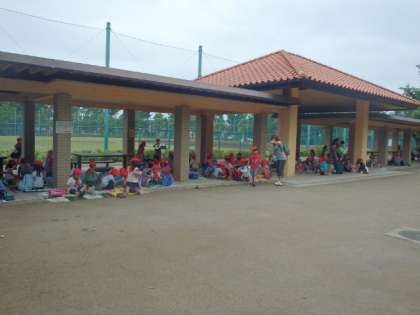 雨が降りそうでしたので、屋根のあるところでお弁当を食べました。お弁当ありがとうございました。昼食後、丘の上広場で、学級ごと鬼になり、4回手つなぎ鬼をしました。帰るときになって雨が降り出しましたが、皆頑張って歩き、無事14時前に学校に着きました。