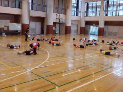 今年度から、2年次研修・3年次研修が年1回から2回になりました。講師の先生は、退職された校長先生方です。今日は、体育科の表現運動「表現」でした。ウォームアップで心と体を解放し、題材から主な特徴をとらえ、お米研ぎ、おにぎり、おもちつき、チャーハンにどの子も笑顔で取り組んでいました。