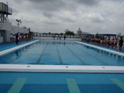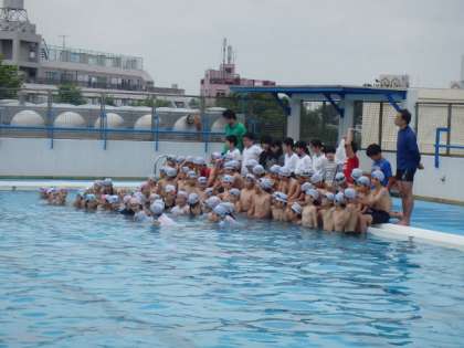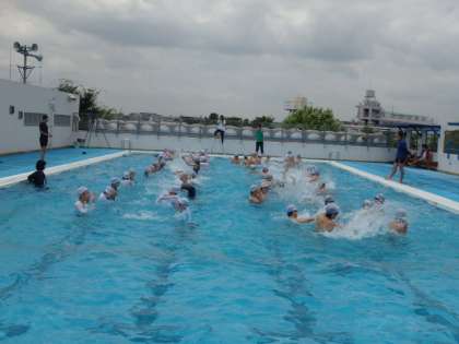 本日、5年・6年がプール開きを行い、全学年のプールでの授業が始まりました。今日の気温27度、水温26度。6年生にとっては、小学校生活最後の水泳授業です。中学校では、授業の中の一人ひとりへの指導は、小学校ほど望めません。今年の授業、夏季水泳教室、高学年水泳教室でしっかり学習し、全員が25mを泳げるようになり、中学校へ進学させたいと思います。写真は、6年生の授業の様子です。卒業アルバムの写真も撮りました。