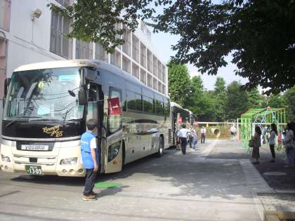 出発式の中で、引率の先生の紹介がありました。8名の教員で子どもたちの指導や安全の見守りをしていきます。また、今回は「東武トップツアーズ」の添乗員が1号車に乗り、現地での調整等を行います。写真撮影のカメラマンとは日光で合流することになっています。8時30分過ぎ、たくさんの保護者の方の見送りを受けて、バス3台が日光に向けて出発しました。この後は、日光から随時子どもたちの様子をお知らせしてまいります。保護者の皆様には早朝よりお見送り等でお世話になりました。ありがとうございました。