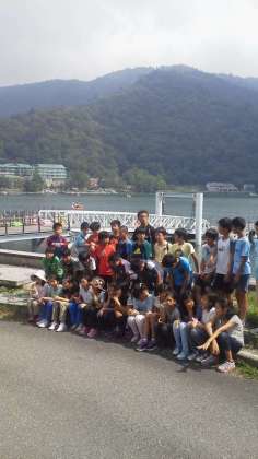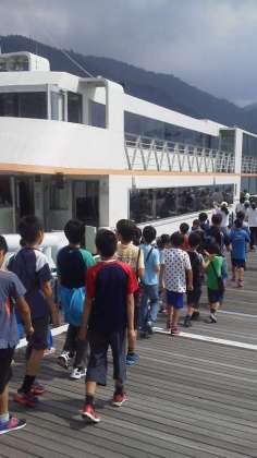 船の駅中禅寺から14時30分発の中禅寺湖榿船に乗ります。菖蒲がが浜で下船し、三本松に向かいます。