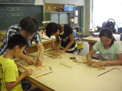 松沢中学校での部活動体験2日目は、サッカー部、バスケットボール部、工作部、美術部、卓球部の5つがありました。この中では、バスケットボール部に参加した人が一番多かったです。写真は、サッカー部、バスケットボール部、工作部の様子です。
