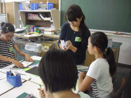 部活動体験も4日目になりました。今回は、美術部、バスケットボール部、サッカー部の3つに参加させてもらいました。美術部では、下絵にカッターナイフで切り込みを入れ、紙を折ると浮き出る作品を作りました。バスケットボール部とサッカー部は、ボールに慣れるためにドリブルやシュート練習をして、最後にミニゲームをしました。