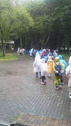 雨の中、21世紀の森ショートハイキングに出発です。雨でも大丈夫な道を歩いてきます。