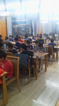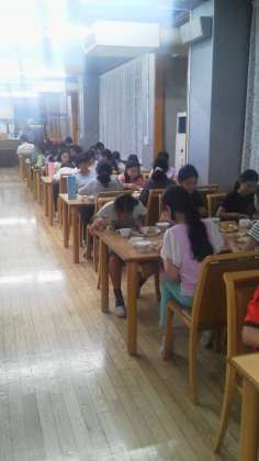 最後の夕食です。野菜に苦戦している子も多く、中には、三年ぶりにミニトマトを食べたという子もいました。次は、村の会堂でキャンドルファイヤーです。