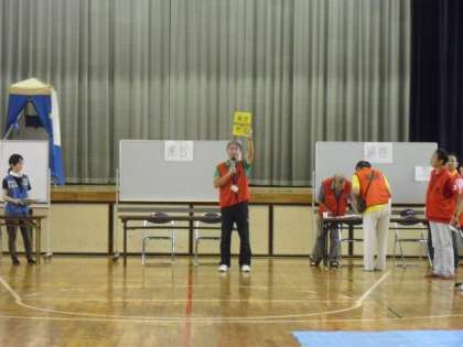 5日(土)の午前、本校の体育館で「避難所運営訓練」が行われました。今年度は、先生達が参加して地域の方と避難所の立ち上げから訓練、後片付けまでを行いました。運営委員は「総務」「運営」「食料」「衛生」に分かれ、4色のビブスをそれぞれに身に付けました。開会式では、校長先生が挨拶の中で「東京防災」の冊子を紹介しました。