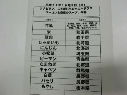10月5日(月)の給食食材産地について
