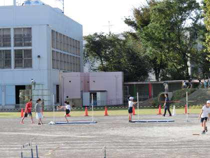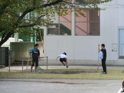 6日(火)から6年生が連合運動会に向けた朝練習を始めました。「100m走」「50mハードル走」「走り高とび」「走り幅とび」の中からエントリーした1種目について午前7時40分から練習をしています。参加は自由ですが、たくさんの6年生が取り組んでいます。すぐに体育着に着がえ、すすんで用具を出している姿は立派です。そんな6年生のために、1年生から5年生までは朝遊びをゆずってくれたり、先生達は学年関係なく練習のお手伝いをしたりしています。