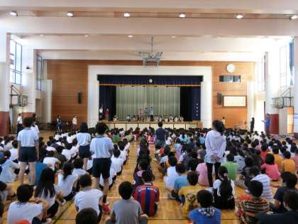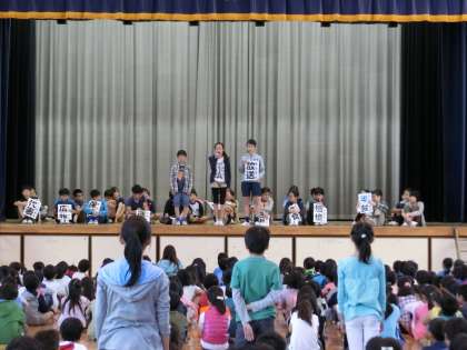 8日(木)の朝は、体育館で「後期委員会紹介」集会が行われました。各委員会の委員長1名、副委員長2名がステージから、自己紹介と活動内容の紹介をしました。他の委員は、その場に立ちました。12ある委員会がそれぞれに活動してこそ学校が動きます。写真の3枚目は、集会後の担当教員とのふり返りの様子です。