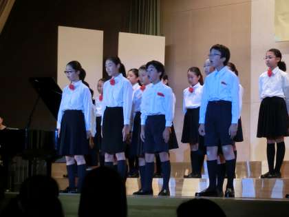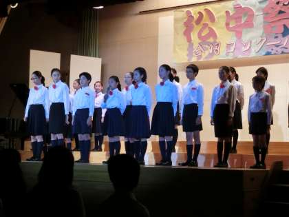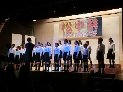 17日(土)、松沢中学校において「松中祭」が行われました。松中祭とは合唱コンクールのことです。午前の部の最後に、本校の合唱団が参加させていただきました。今回は5年生と6年生が参加しました。最初に、松沢中学校に兄か姉のいる子どもたちが前に出て自己紹介をしました。披露した曲は3曲で、いずれもピアノ伴奏なしのアカペラです。1曲目は「さびしいカシの木」。4人だけの重唱です。2曲目は「星の世界」。会場全体が静まりかえり、子どもたちの歌声だけが響きわたりました。