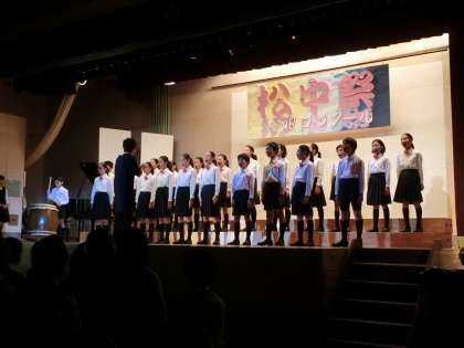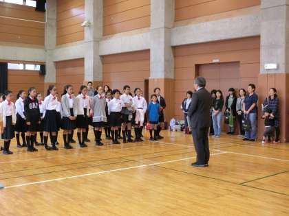 3曲目は「村祭り」。6年生が和太鼓をたたき、祭りのムードを演出しました。会場のみなさんからたくさんの拍手をいただきました。出演終了後、中学校の校長先生、副校長先生からそれぞれにおほめの言葉、感謝の言葉をちょうだいしました。赤松学舎としての交流がまた一つできました。