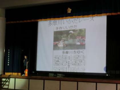 全校朝会 その1 アドベンチャーin多摩川報告会 (10/19)
