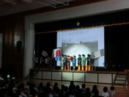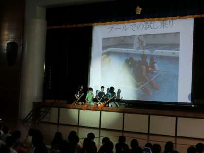 19日(月)は、体育館で全校朝会をしました。今回は8月30日(日)に開催された「アドベンチャーin多摩川」の報告会でした。出場した子どもたちが、いかだを作るまでのこと、プールでの練習、本番の様子などをリレー方式で紹介しました。4年生から出場ができるので、来年も参加希望の子どもたちがいるとうれしいです。