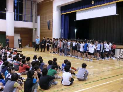 全校朝会 その2 6年生をみんなで応援 (10/19)
