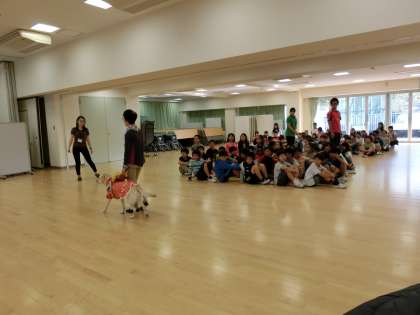 20日(火)の6時間目、4年生が総合的な学習の時間の一環として盲導犬ユーザーの方からお話をうかがいました。今回も世田谷ボランティア協会の方にご協力をいただきました。見えにくい状況を助けてくれるグッズの紹介、白杖だけの生活から盲導犬との生活になり大きく変わったこと、街中で盲導犬を見かけたときにやってはいけないことなどをわかりやすくお話くださいました。