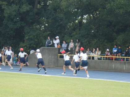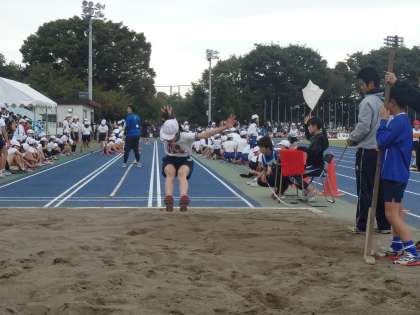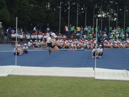 写真は、女子走り高跳び、走り幅跳び、400mリレーの様子です。