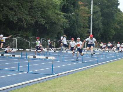写真は、男子400mリレー、100m走、50mハードル走の様子です。